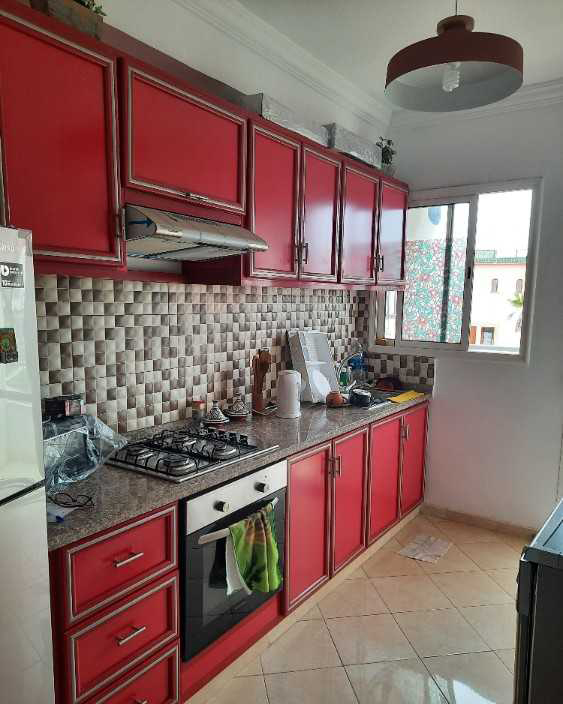 Appartement neuf de 67 m² à vendre avec place au garage de 14 m² titrée à Lotissement Moumen à Mohammadia au 1er étage, ensoleillé sans vis-à-vis avec belle vue sur un jardin, composé d’1 grand salon, 2 chambres, cuisine avec balcon et salle de bain totalement rénovée.
